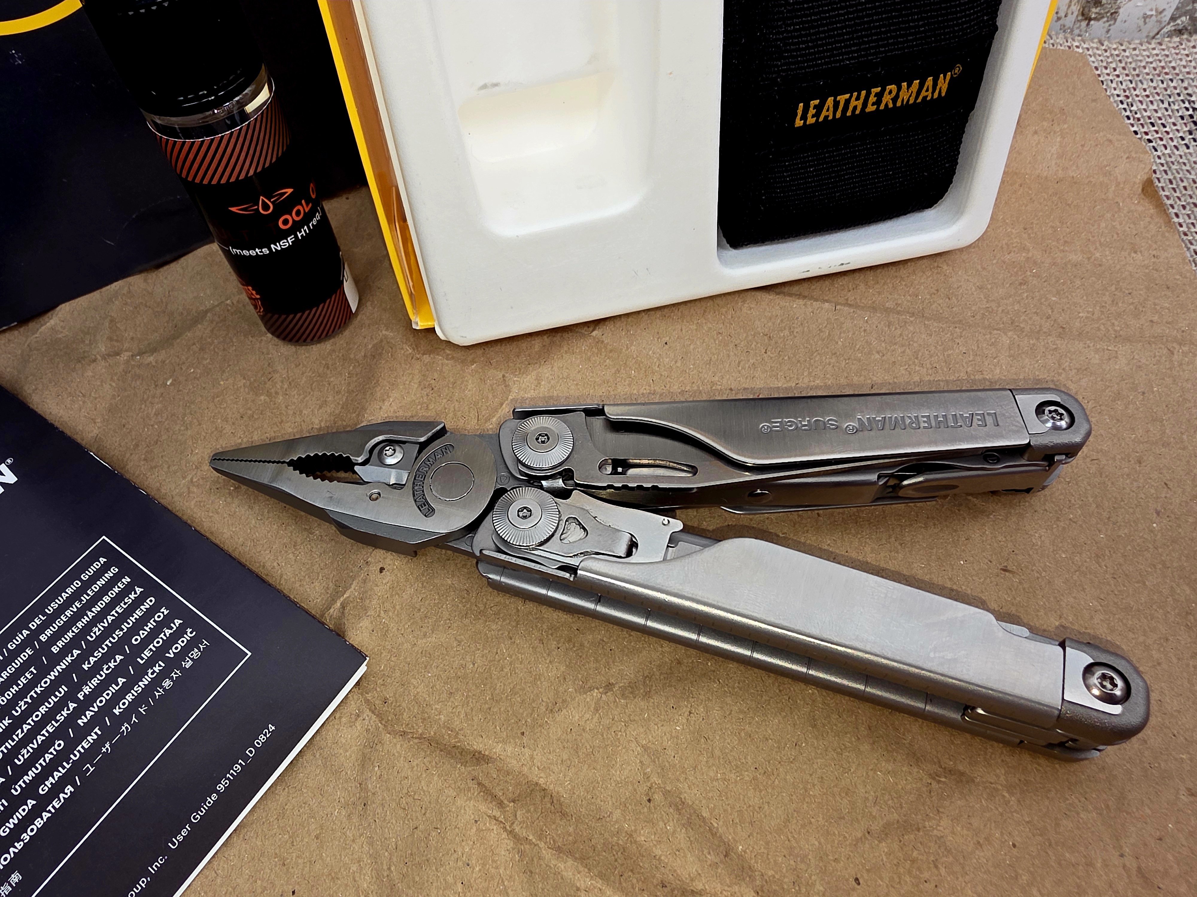 LEATHERMAN SURGE (арт. 830165) — это мощь! Качество сборки на высоте (сделано в США, все детали подогнаны идеально). Огромный функционал — это настоящая "взрослая" рабочая лошадка. Ножницы и пила по металлу просто монстры, справляются там, где другой мультитул "зависнет". Нейлоновый чехол в комплекте очень плотный, удобно крепится на ремень.